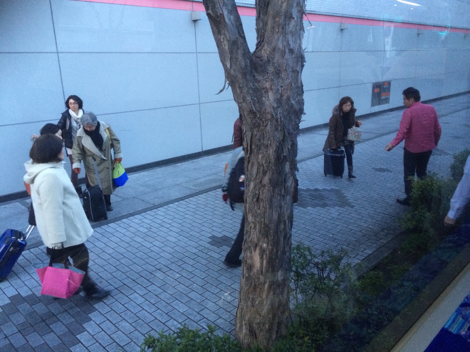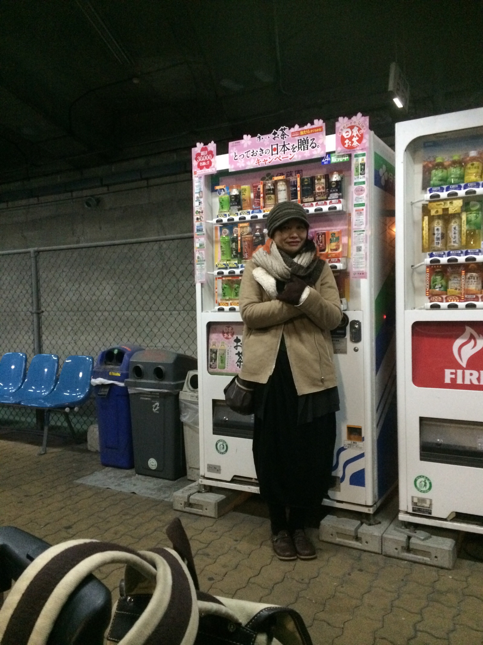出発前、自販機で暖をとるオカンこと敬子さんと、徳永さん! 神戸shion