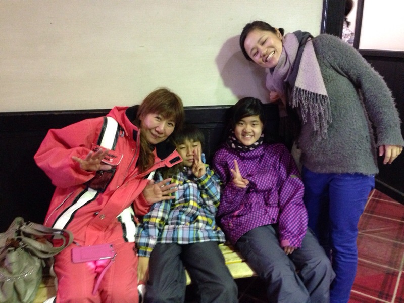スキー、スノボ組でポーズ! ヤマちゃん、少しお疲れ気味です! 大阪E