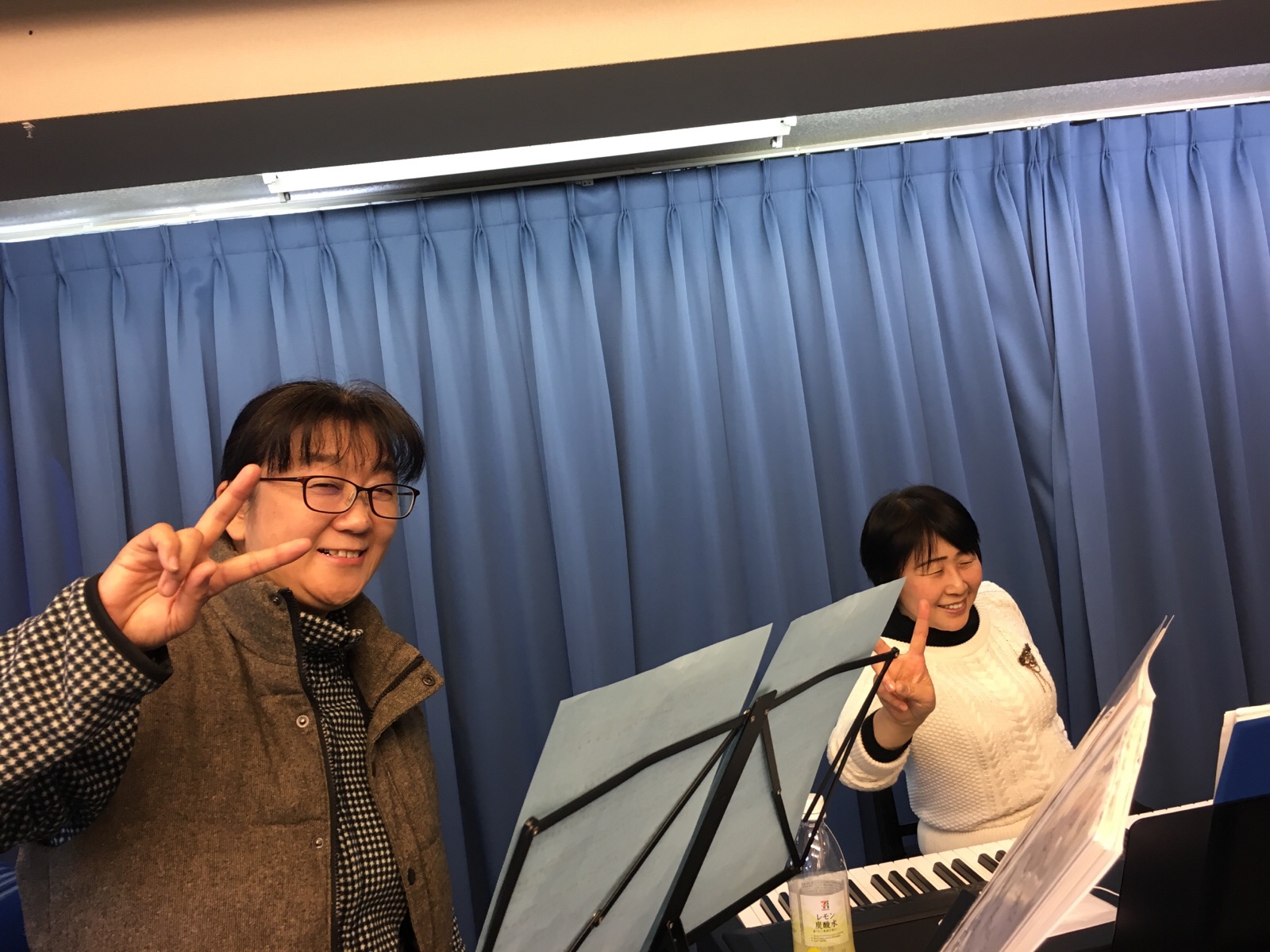 会堂に来たら、ウラノスのお二人が練習中でした。