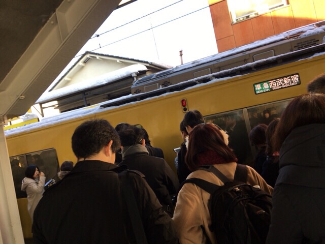 やはり、雪の為、電車いっぱいです。