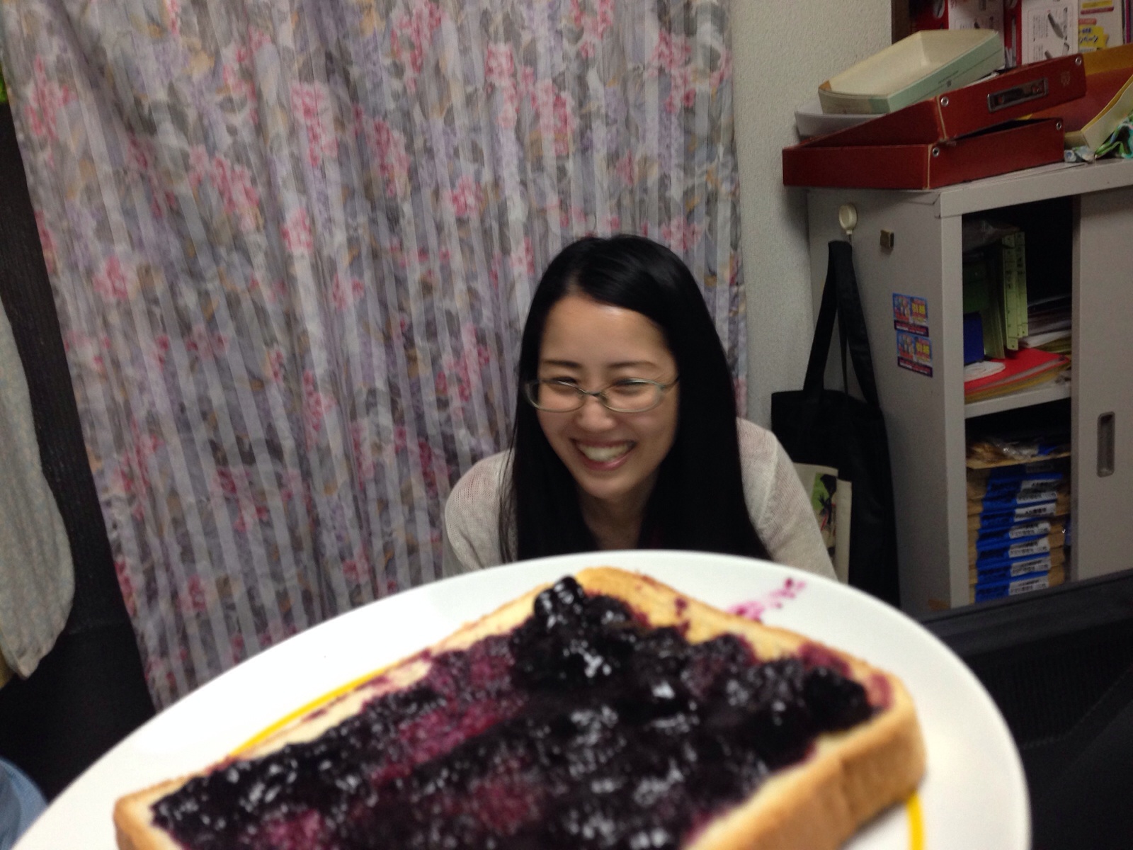 香ちゃん、デザートのブルーベリーパンを焼いてくれました!美味しそう!エステル清水