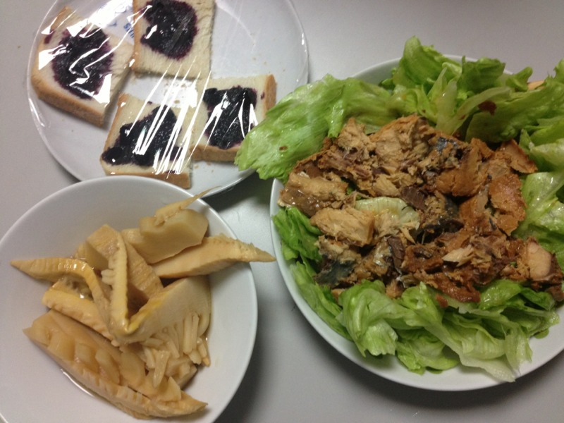 さっきの夕食です。皆んなでいただいちゃいました! ブルーベリーのパンは…デザートらしいです?amagai