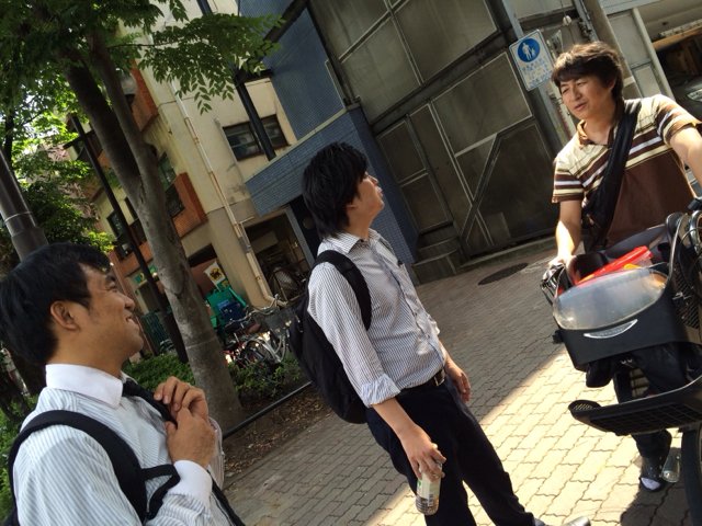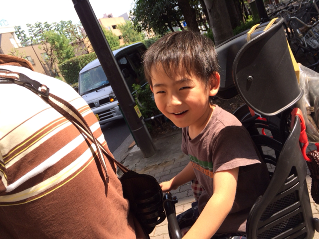 路上ライブに行く時に、三本松牧師とばったり会いました! 後ろにはヨシュア君が乗っています。
