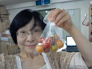 今朝、近所の畑でプチトマトを買いました。 今日の礎の石事務局でのお昼ご飯です。