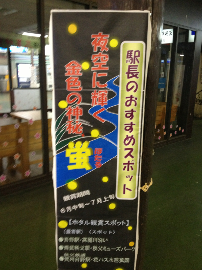 地元の西武秩父駅に着きました! ちちぶでは今、蛍が見れるみたいです! (私はあまり見た事がありません。) yamanaka