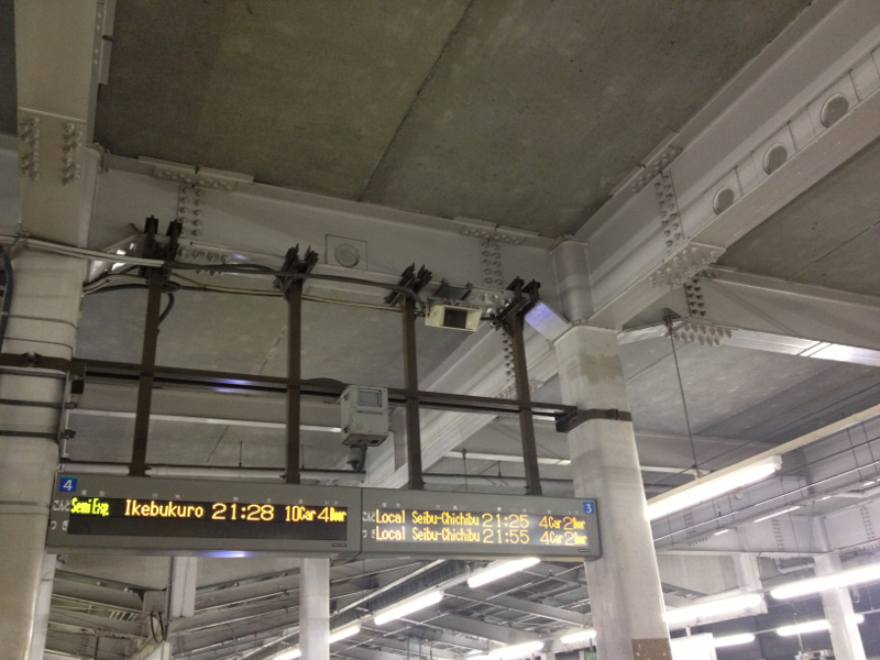 最後の乗り換えです! 「飯能駅」から、西武秩父線になります。21:25発です! 少し、眠くなってきました、。