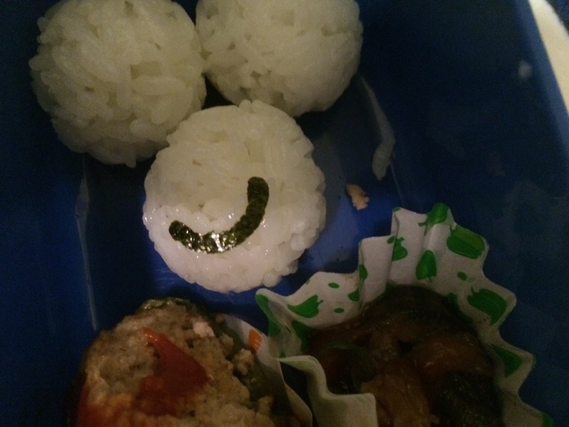 今日から一週間ほど主夫をします。 まずは、息子のお弁当、恒例の「喜んでいよう、笑顔でいよう」弁当を作ります! 小さいおにぎりは、小槌のようなパックにご飯を入れて作ります。