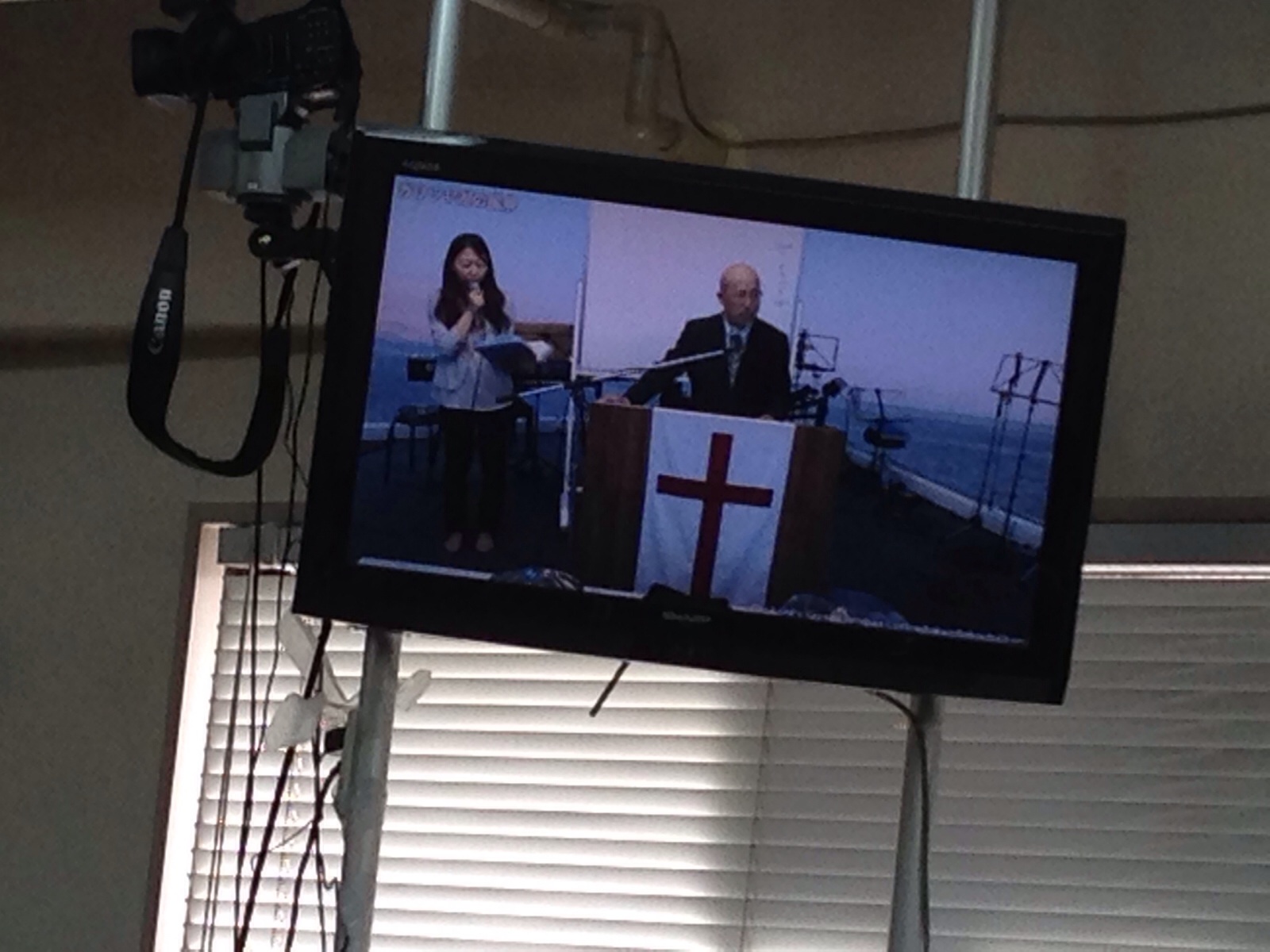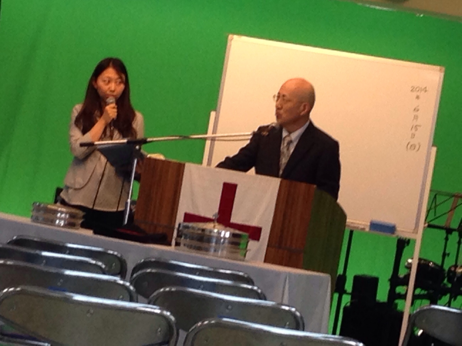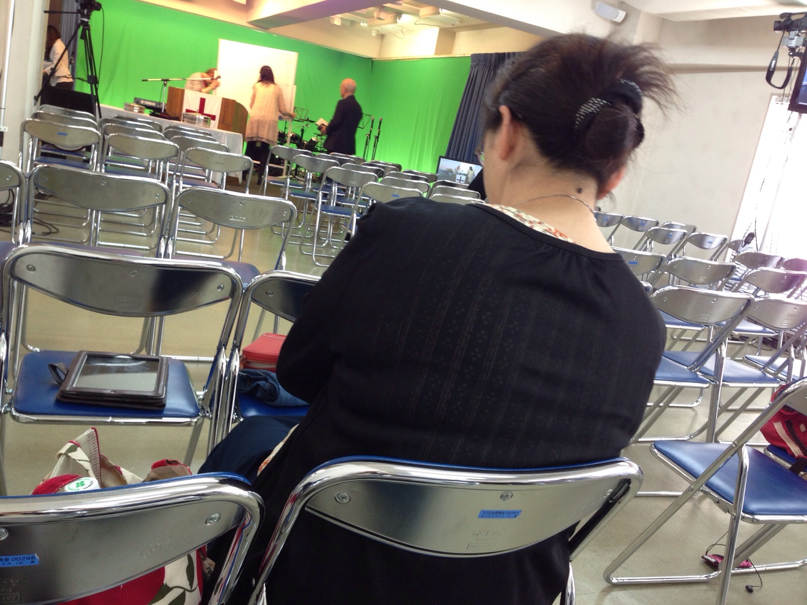 インターナショナル礼拝のセッティング中。セッティング難しい。