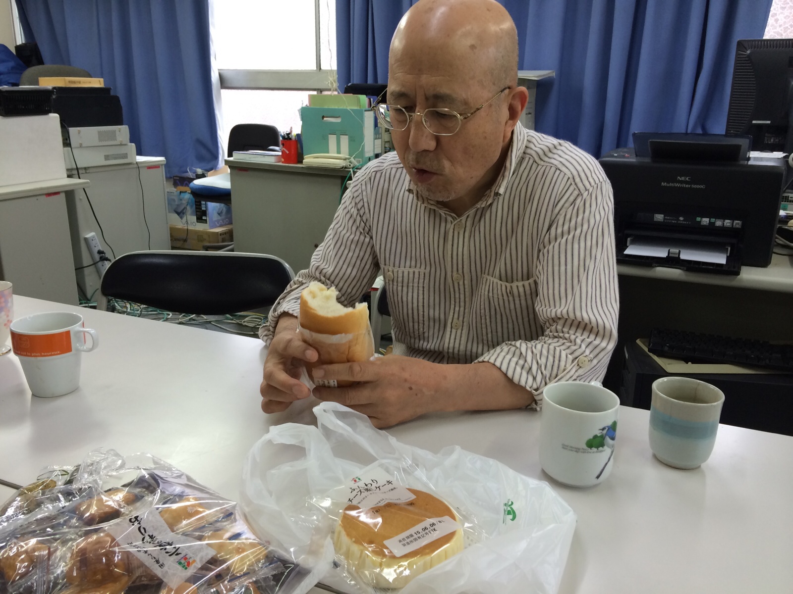 モーセ鈴木さん、遅いお昼ご飯です。朝食をしっかり食べたので、昼は、パン。 ミカエル