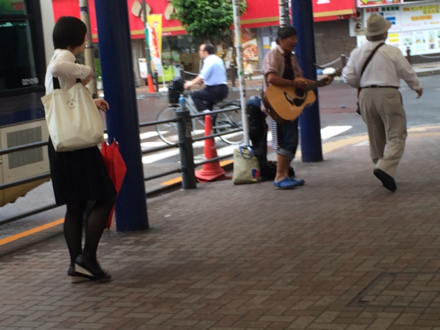 かやのさんへ。 先ほど、私も見ました! 路上ライブをやってるおじさん。 すごい声量で歌っていました。 meg