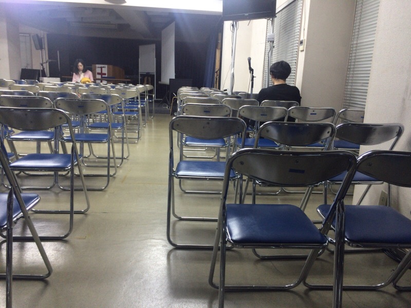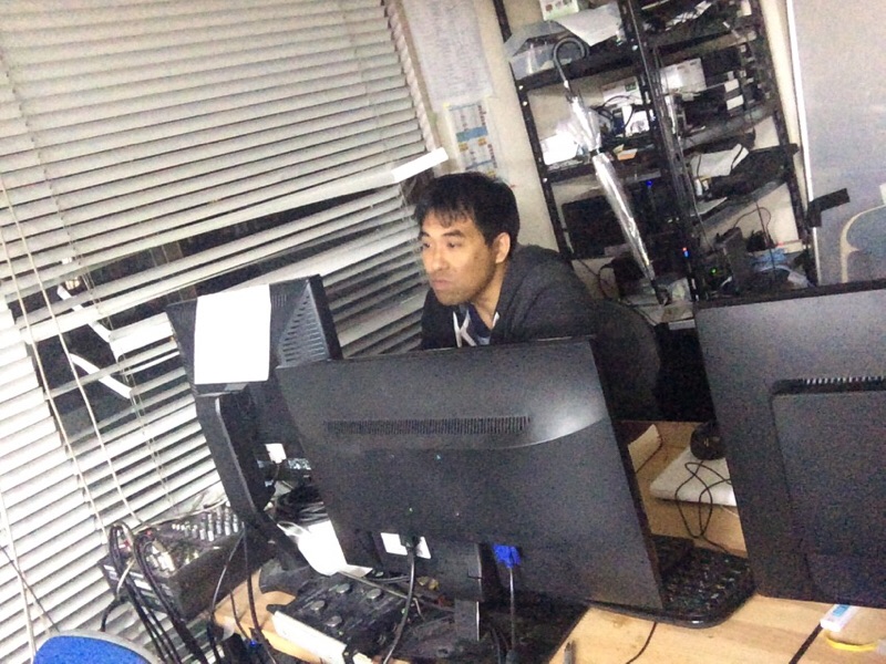 残業を終えて教会事務所に来た清水さん、外部渉外のお仕事中。 kato