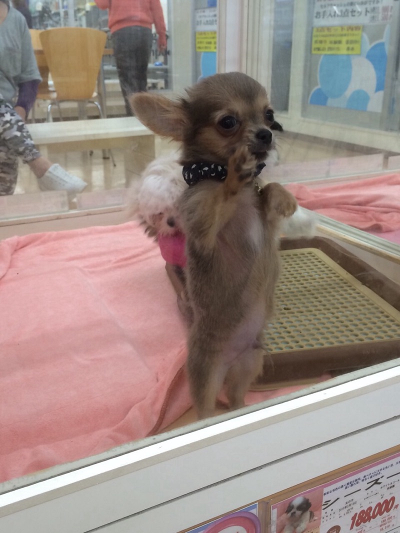 ペットショップでガラス越しに歩き続ける可愛い仔犬でした。 くりこ