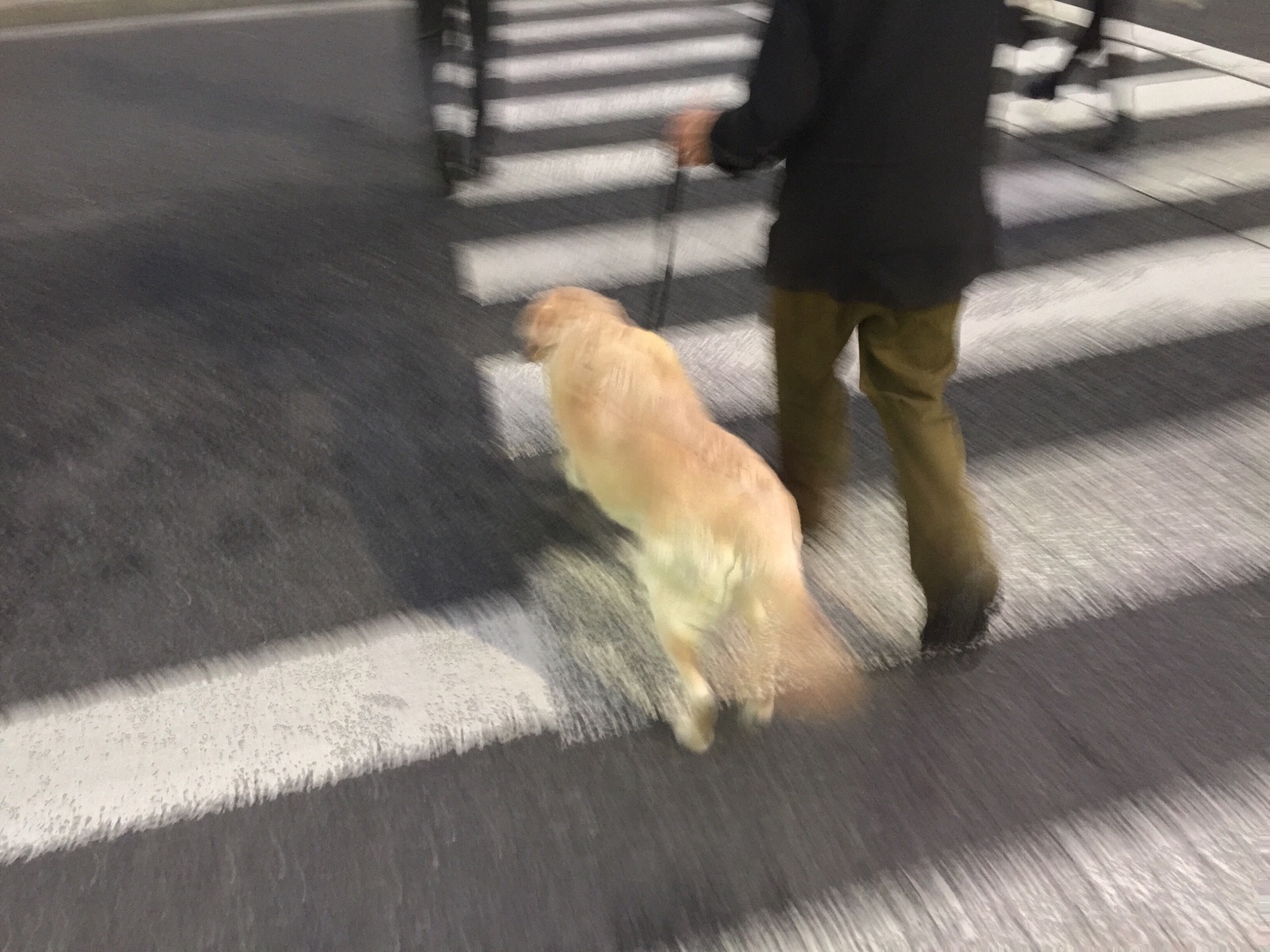 お年寄りの犬と見えて、よろよろしながらさんほしています。masukawa