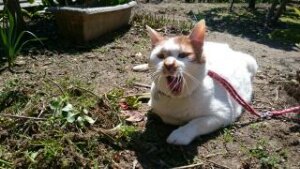 実家に帰ったとき、お庭にいるみんなのところに行きたくて、網戸をやぶったマルちゃん。