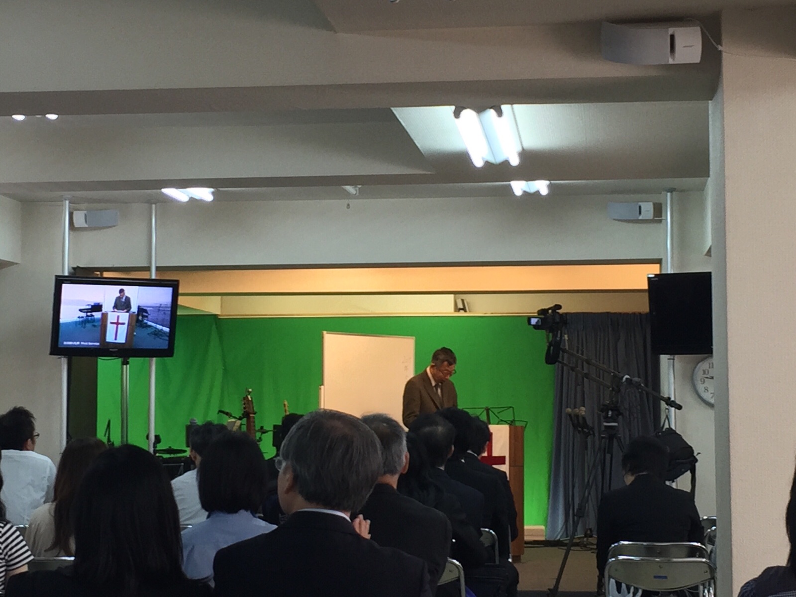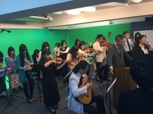 第二礼拝へ。 ペットブロガーの益川さん、バイオリンを演奏中!