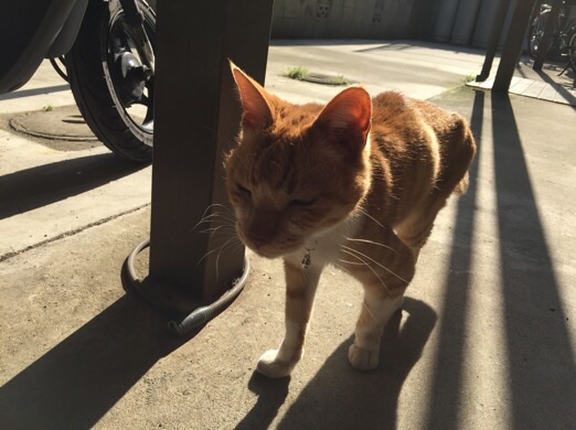 辻郷さん宅近くのノラ猫。あんまりやせているので、かわいそうに思ってエサをあげているとか。