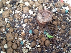 冬ですが、ベランダの植木鉢に芽が出ていました。