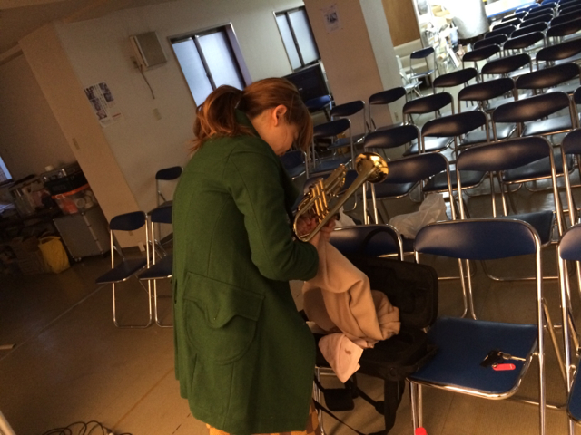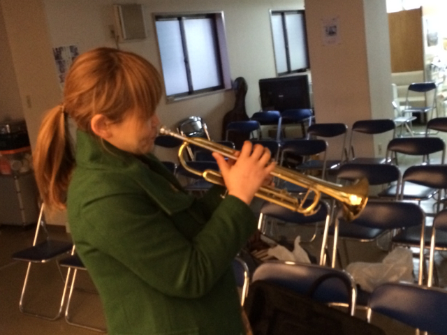会堂に来たら、由美ちゃんがトランペットの練習をしてます! Gifts Kayano