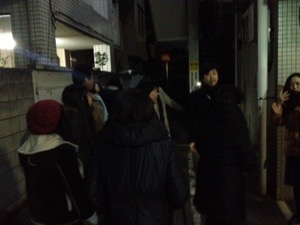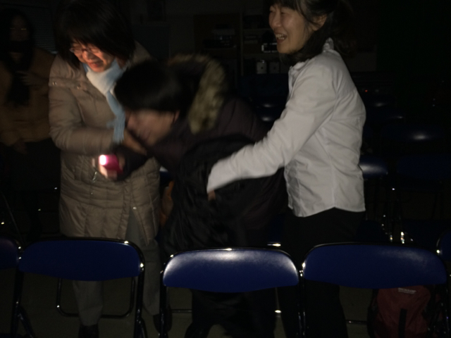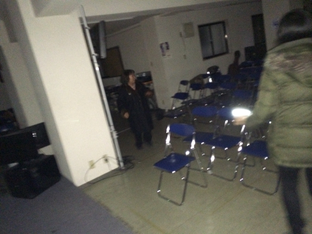 天谷さんは事務所、菱沼さんは神学校へトランシーバーを持って移動しています。