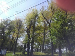 桜一面の公園が新緑に代わっていました。もうつつじの季節