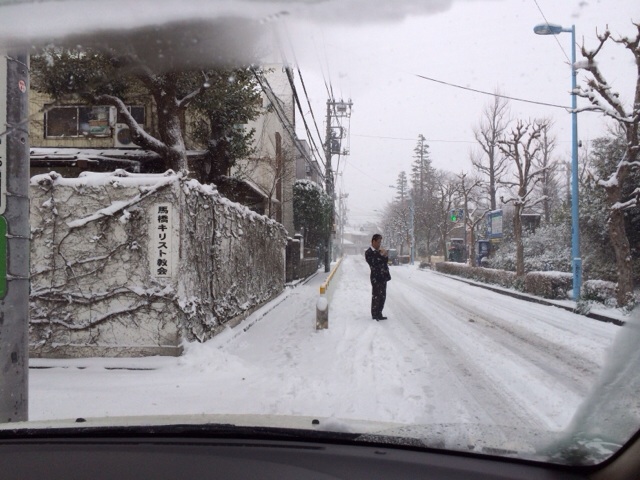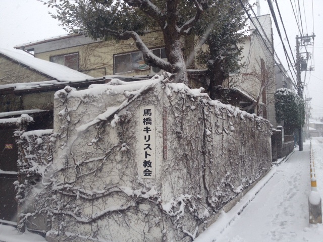 雪道をすべりながら、ギアをちょいちょい変えつつ、馬橋教会に向かいます。