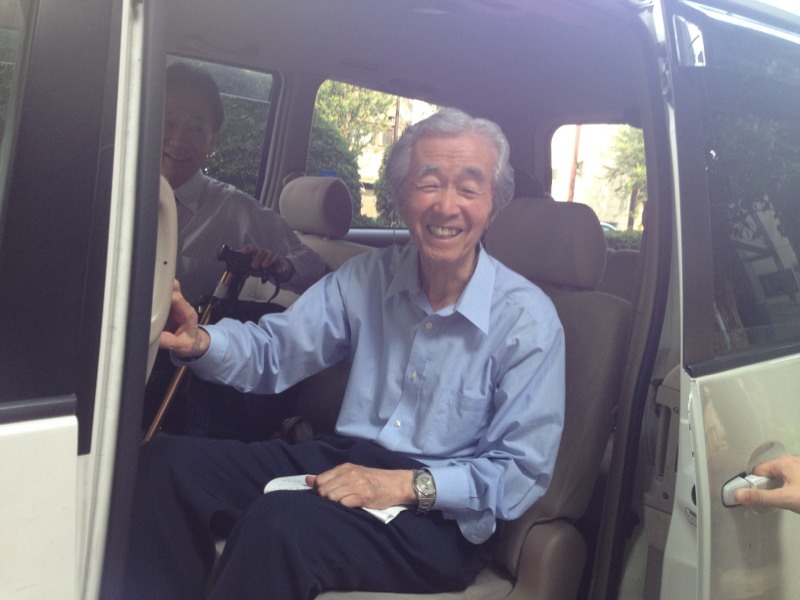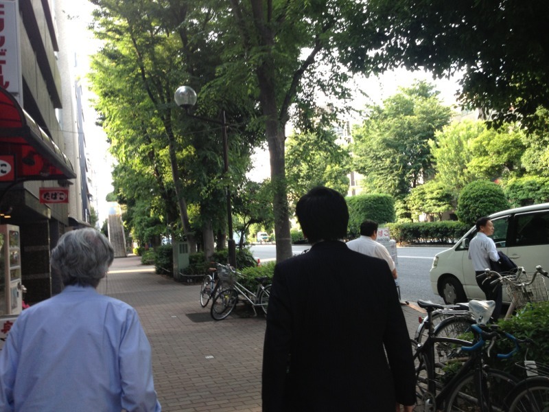 環七に止まってる車へ、向かわれます! 外は緑が映え、すがすがしいです。