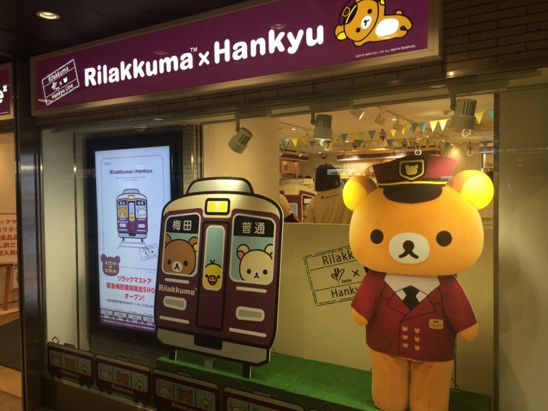 アルバイトが終わったので今から帰宅です!帰りに阪急✖︎リラックマのコラボのお店をみつけました! かわいい! けいすけ