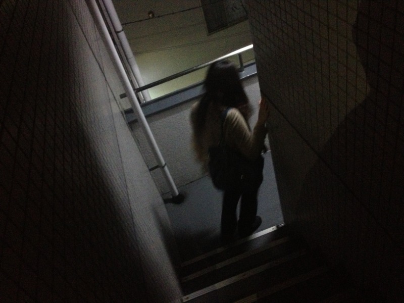 4階非常階段から下ります! 雨なので、階段が滑りそうです。 気を付けて…! アマガイ