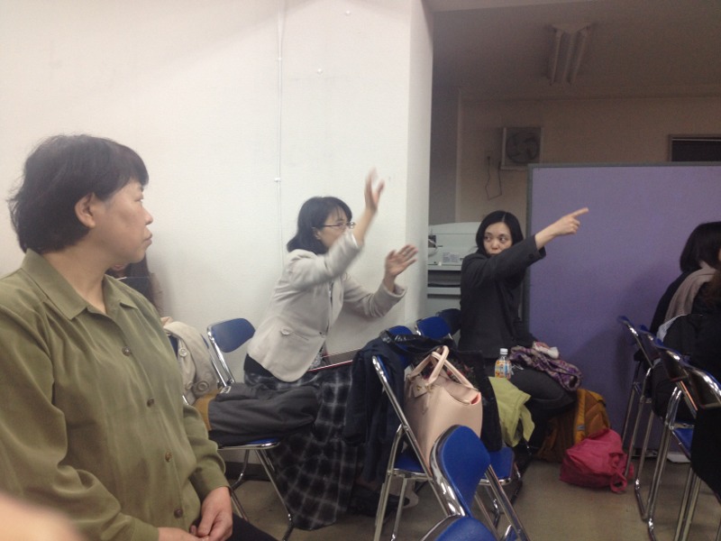 集会部門のミーティングへ。 広田さん、集会部門参加中です。