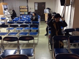 3人で何やらチェック! 真剣です! (教会事務所にて) アマガイ