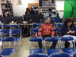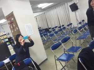 会堂に到着! 広田さんが先についていました。 メッセンジャーだそうです。