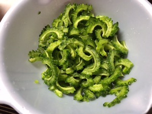 まぜて、ゴーヤサラダを作っています(*^_^*)