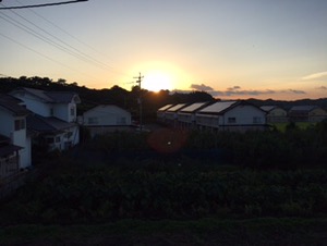 帰り道の空、厚い雲の向こうに晴れ間が見えてました。