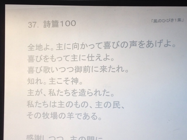 まりこさんが賛美リーダーです!詩篇100から賛美!