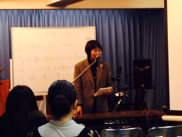 講評中の横尾さん。 聖書神学講座では、いつも熱心に質問しています。