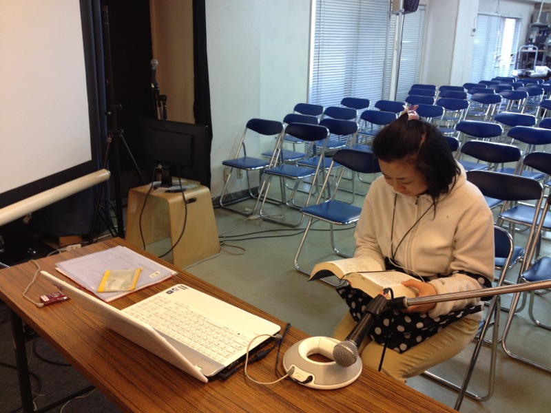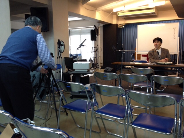 会堂では…パウロ北野牧師の旧約概論の授業をPCで…