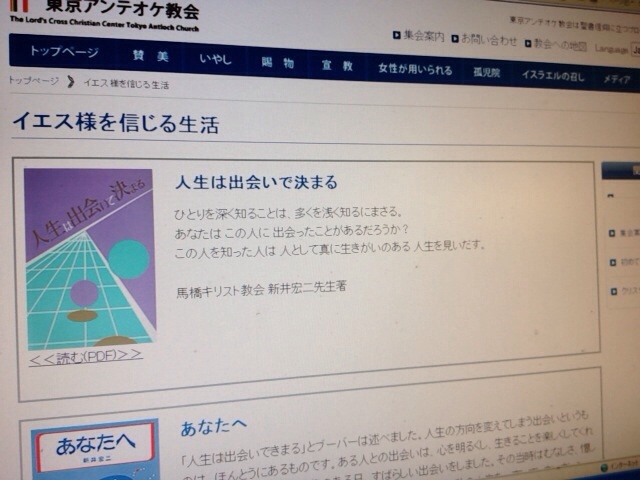 東京アンテオケ教会ホームページから、新井先生の「人生は出会いで決まる」が読めます!