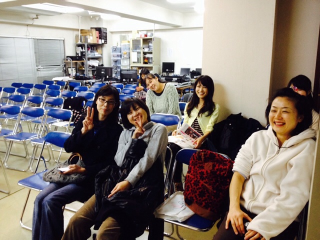 今日の女子牧会でメッセージの山川さんに、喜びのポーズをお願いしました! (うしろで大野さんがあおいでいます)