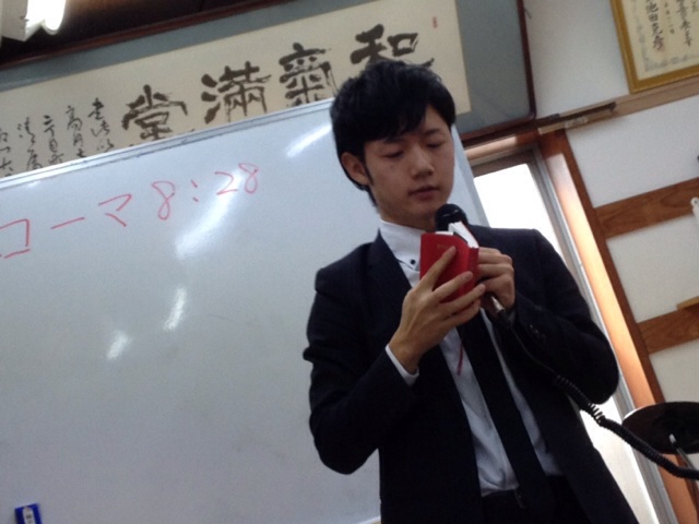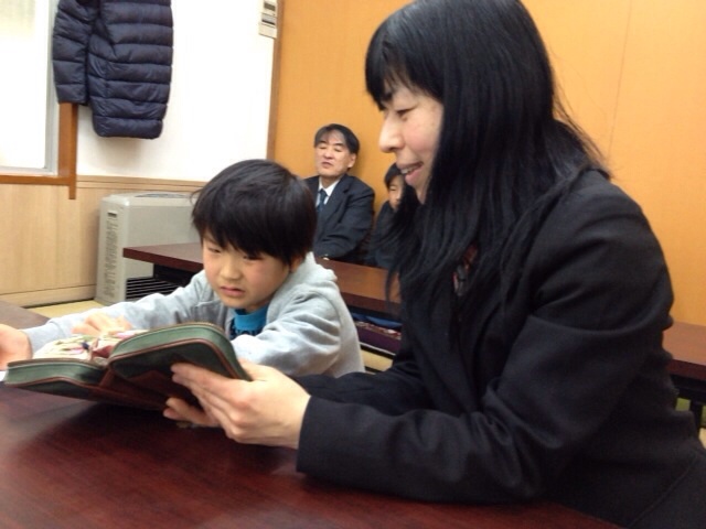 早速、紙芝居で聖書のお話。 今日は、ルツのお話です。 会館にて