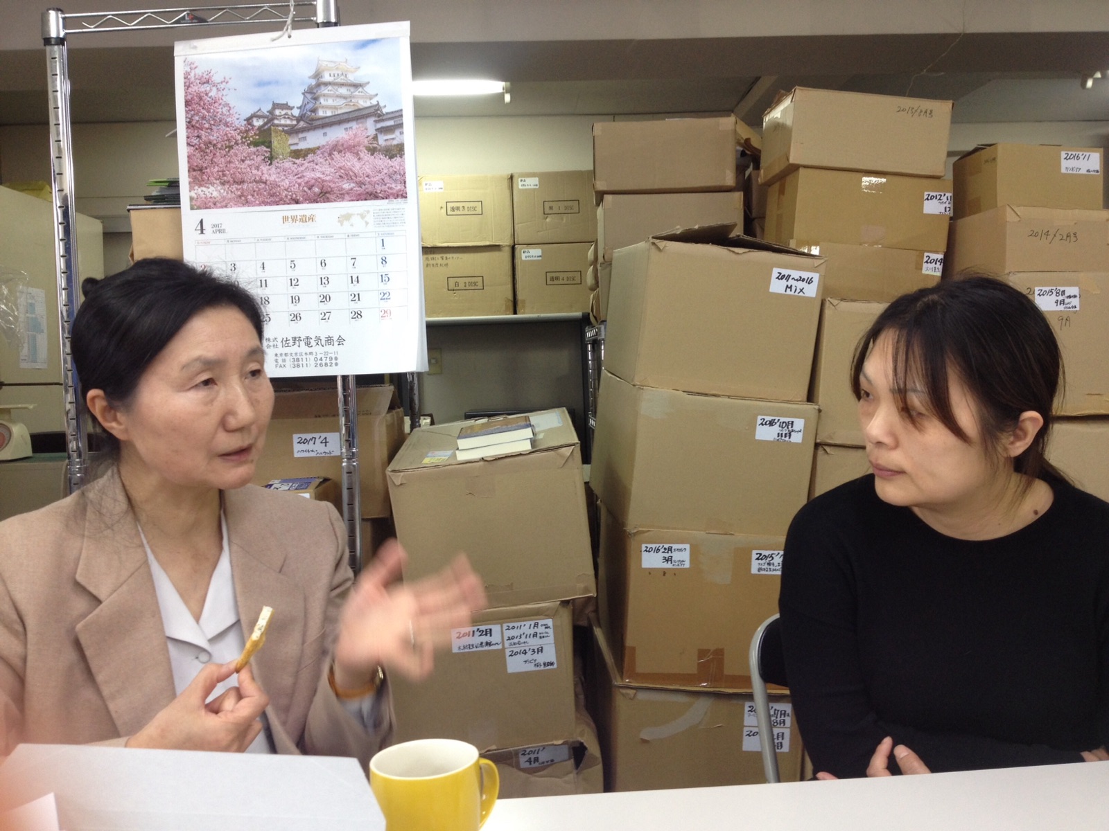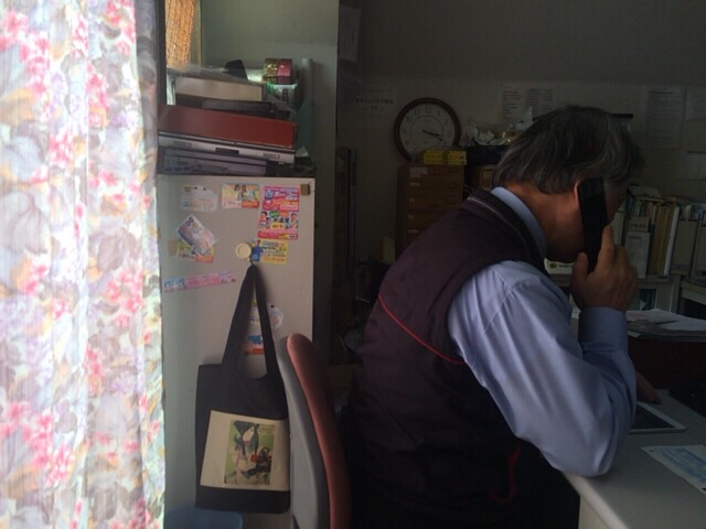 ミッション誌印刷のお手伝いが終わり教会事務所に戻って来ました! ランチ終えて、お電話中…!amagai