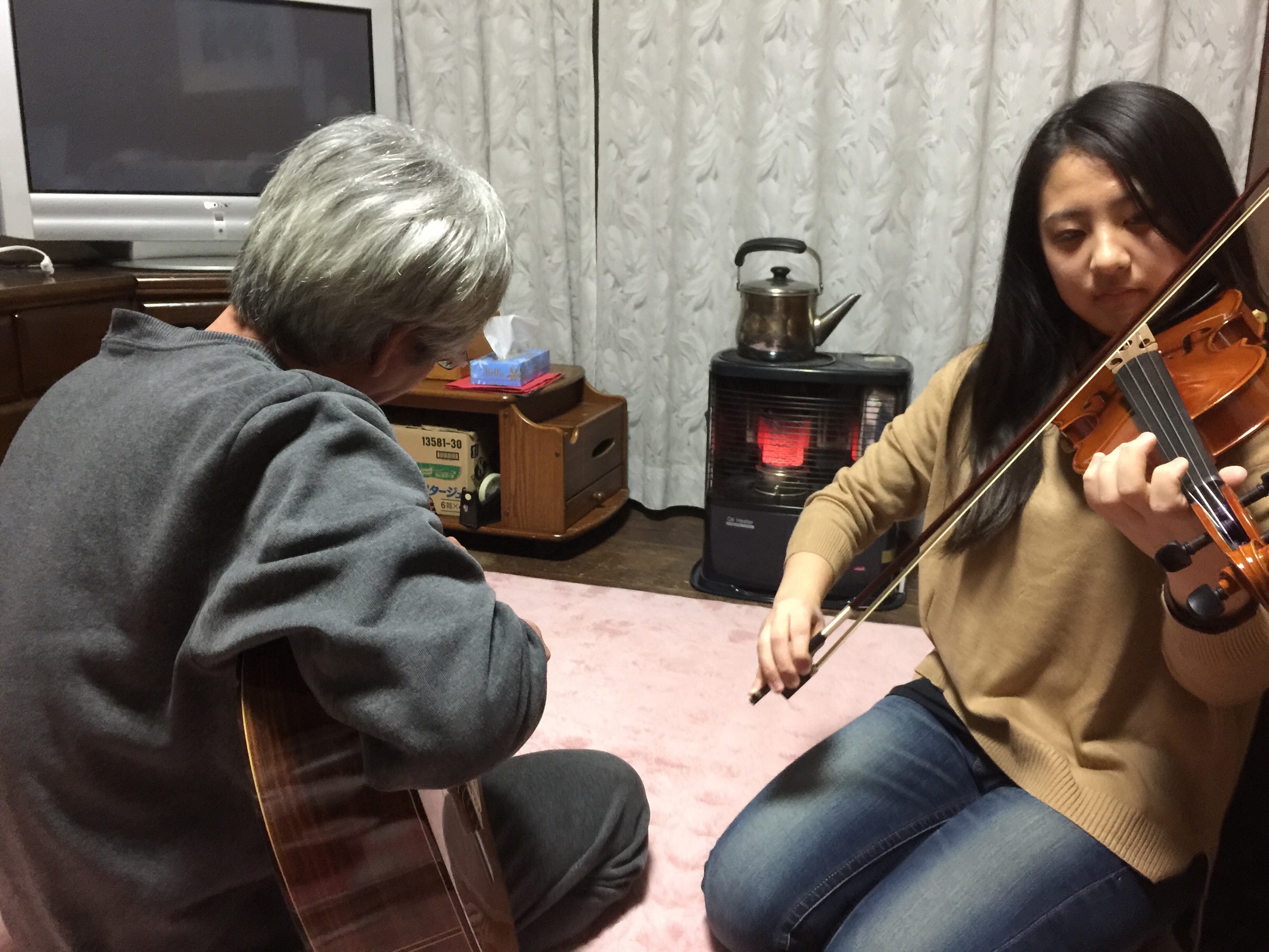 弦楽器初心者の娘、オーケストラの練習の時だけは素直にお父さんのアドバイスを聞いています。