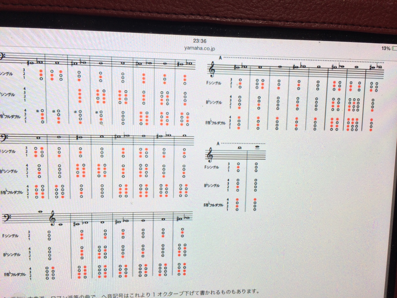 夜遅いので、音は出さずに運指表で確認を、、少しずつ覚えて吹けますように〜♪