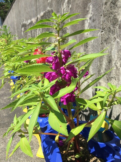 小学校で育てているホウセンカ。
