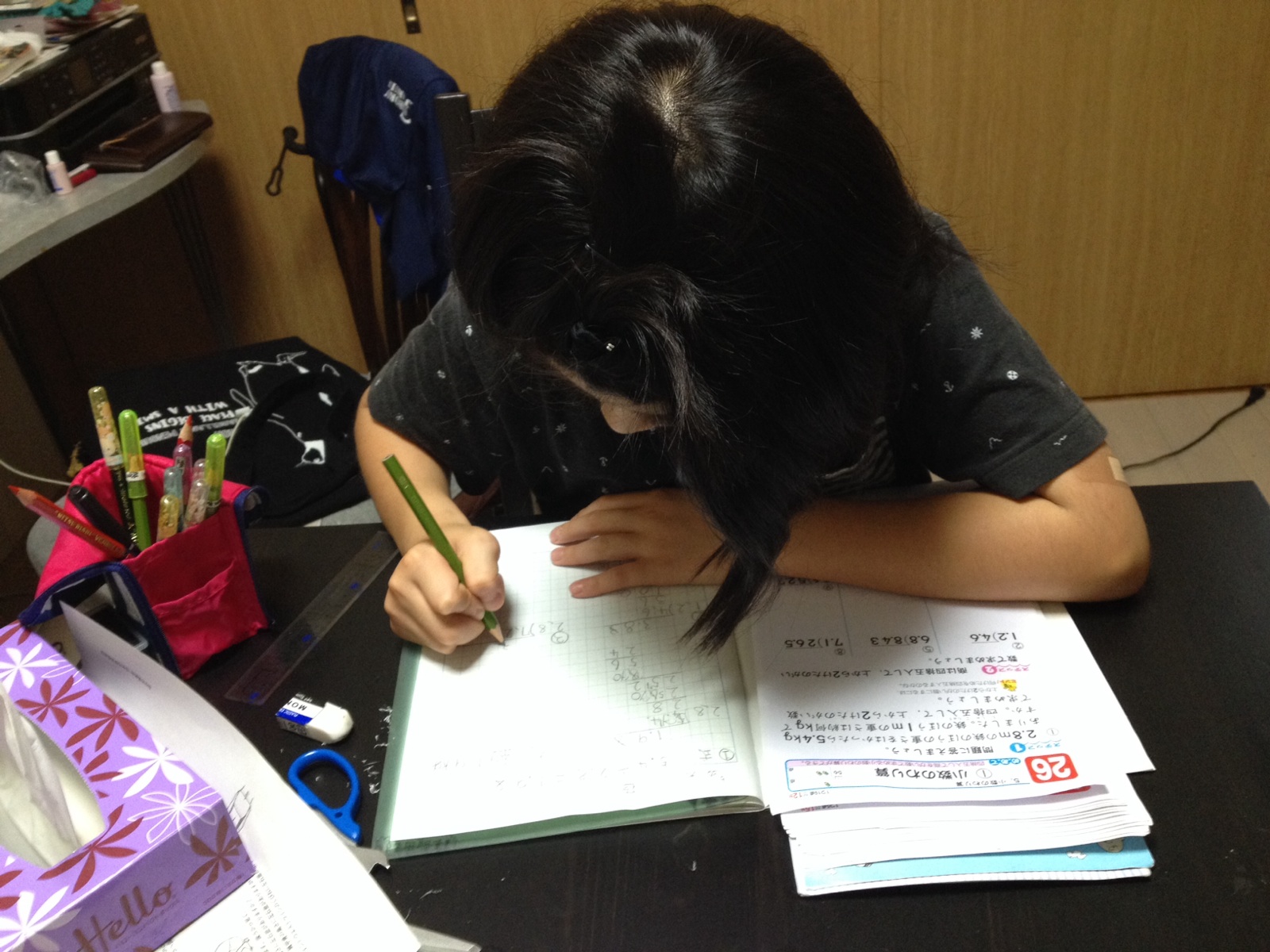 腹痛の母の為に布団敷いた後、自分も寝ちゃったらしく宿題がまだ終わっていないそうです。 東フィラデルフィヤ シオン