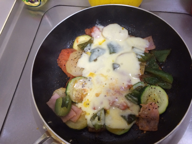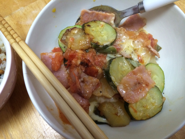 今日のお昼は、最近ハマッてる野菜とベーコンのチーズ焼きを作りました! Gifts日記 Kayano