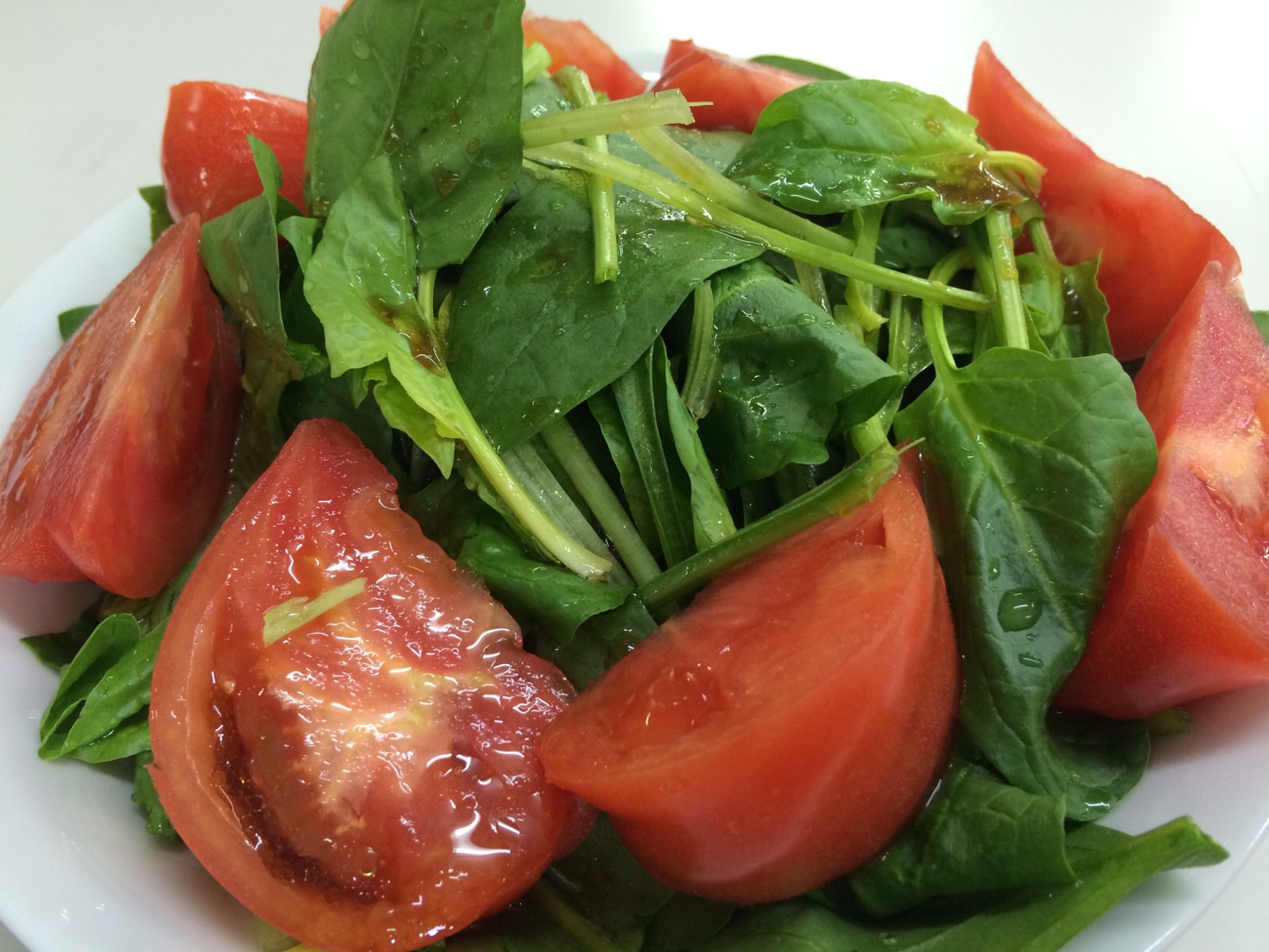 サラダほうれん草とトマトのサラダ。