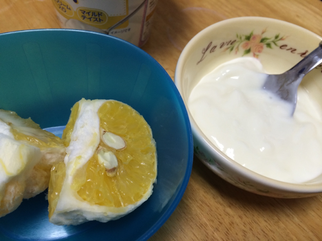 今日は朝はお休み。 洗濯と掃除をしなくちゃ〜! ヨーグルトと夏みかん食べてます。 Gifts日記 Kayano