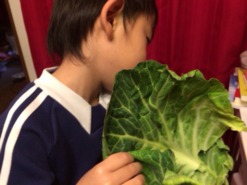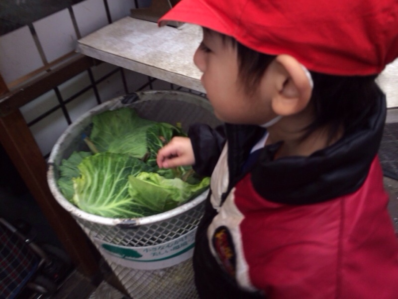 幼稚園帰りの時間帯、そろそろ貯まった頃…?スーパーのキャベツ売り場。隣にある剥がされた葉っぱをゲットすること♡