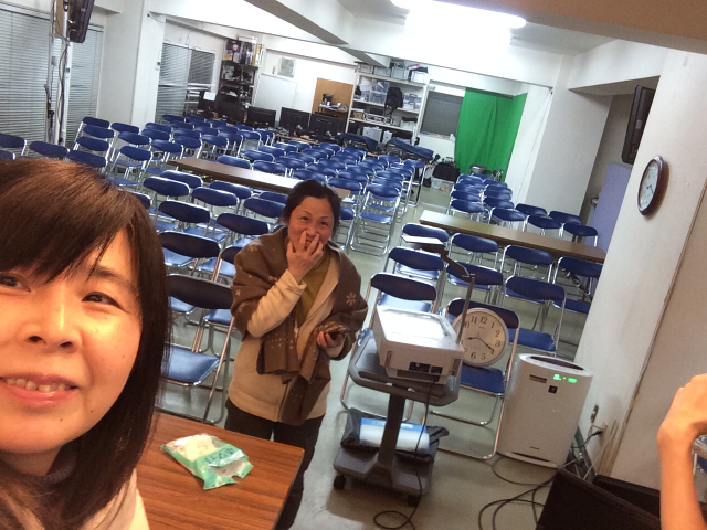 荒地に川ミュージックの事務所にて作業中のゆみちゃんです♪沖縄の予選会ききながら〜 ラベイユ まり