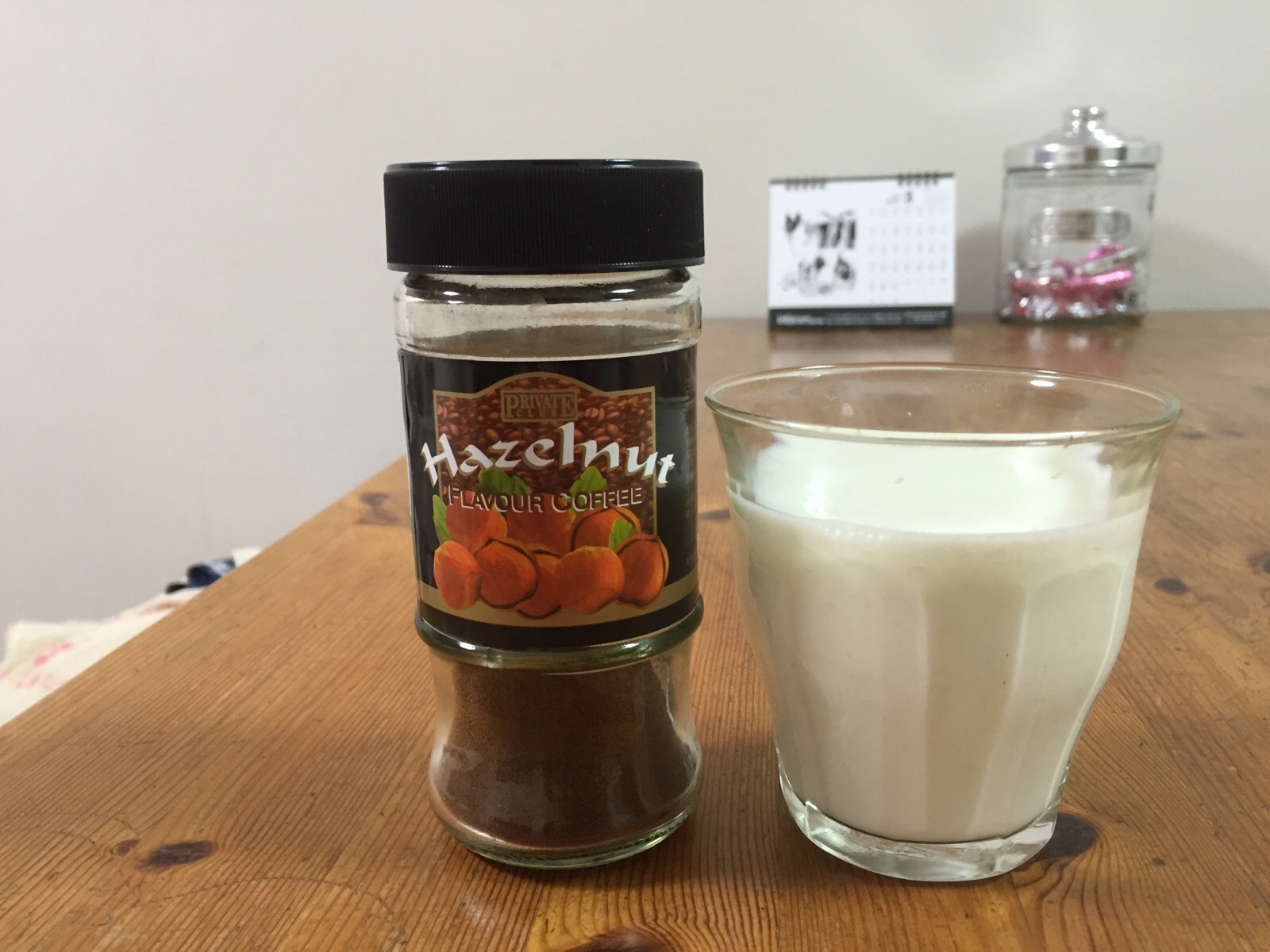 ヘーゼルナッツフレーバーのインスタントコーヒー。温めたミルクに入れるとカフェラテみたいでお気に入りです。 Yui